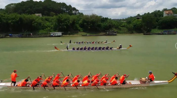 藤县是一个山水相依的县域,县内江河密布,水系发达,赛龙舟一直是藤县人民喜爱的传统体育竞技活动,它深深地烙印在藤县人民的精神血脉里,历久而弥新。赛龙舟中所体现出来的顽强拼搏、力争上游的“龙舟精神”,则是中华民族坚韧不拔、自强不息的主体生存意志和团结奋进的集体主义精神的生动体现。