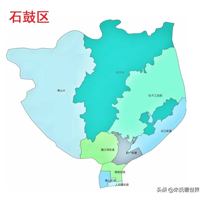 石鼓区总面积105平方千米 ,下辖6个街道、1个镇 ,即:人民街道、青山街道、潇湘街道、五一街道、合江街道、黄沙湾街道、角山镇。截至2021年末,石鼓区常住人口22.21万人。