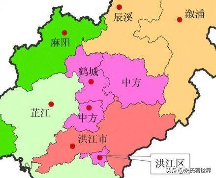 鹤城区,区政府驻红星街道。位于怀化市域中部、主城区,区境东、南临中方县,西邻芷江县,北连麻阳县、辰溪县。