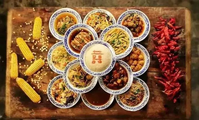 禹州十三碗,禹州特色美食,制作技艺为省级非遗代表性项目。菜品为四荤、四素热菜、一甜食、一凉菜、一甜汤、两咸汤共计十三碗,故此得名。主料为本地猪肉、豆腐、焖子、粉条等。多先将食材油炸或水煮,待客之日再上笼蒸制,而后倒扣在粗瓷海碗中,加入不同高汤托盘上桌。主菜有“里脊鸡”“豆腐鱼”“大肉皮”等,平中见奇,粗中见细,以肥而不腻、红亮醇香、汤鲜味浓、回味绵长著称。