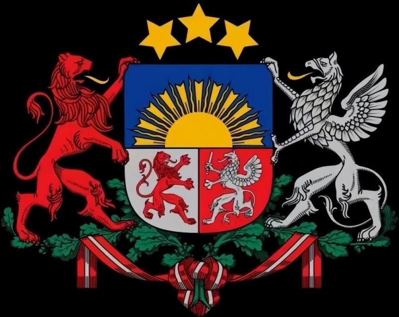 拉脱维亚国徽分为大、中、小三个样式。小国徽为盾徽:中心图案为盾徽。盾面上半部的太阳代表拉特格莱公国,左下方的红狮代表库兹拉姆公国,右下方的银色半狮半鹰怪兽代表韦德季姆公国。盾徽上端有三颗金色五角星,象征三个公国的再联合。中国徽:加上了象征和平、自由的橡树枝条。大国徽:树枝以国旗捆绑,左右以狮子和狮鹫守护着。