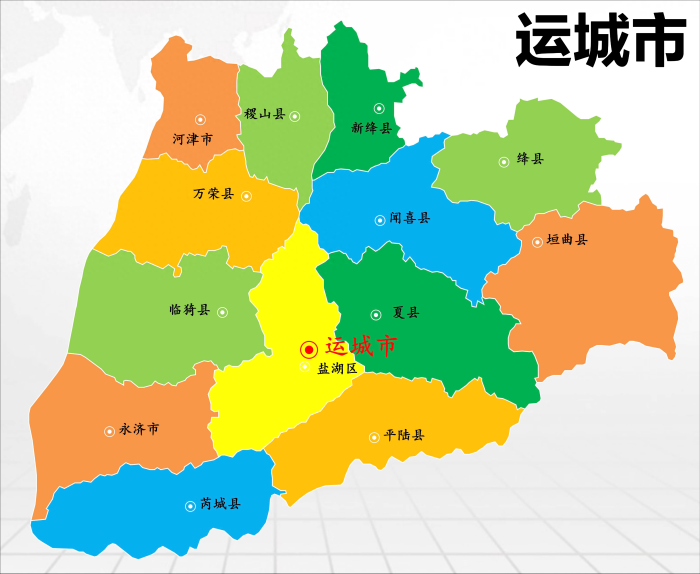 运城市,简称“运”,古称河东,别称凤凰城,山西省辖地级市,位于山西西南部,北依吕梁山与临汾接壤,东峙中条山和晋城毗邻,西、南分别与陕西渭南、河南三门峡隔黄河相望,东西长201.87千米,南北宽127.47千米。辖区总面积14182平方千米;运城市辖1个市辖区、2个县级市、10个县:盐湖区、永济市、河津市、绛县、夏县、新绛县、稷山县、芮城县、临猗县、万荣县、闻喜县、垣曲县、平陆县;运城市人民政府驻盐湖区河东街248号。截至2022年末,运城市常住人口为471.85万人。2023年,运城市地区生产总值(GDP)完成2329.9亿元。车辆牌照代码为晋M。