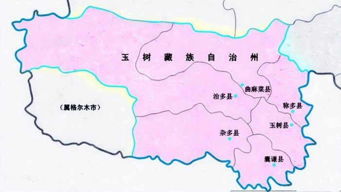 北与海西蒙古族藏族自治州相连,边界线长724千米。西北与新疆巴音郭楞蒙古自治州接壤,边界线长180千米。东与果洛藏族自治州互通,边界线长240.6千米。东南与四川省甘孜藏族自治州舭邻,边界线长176千米。西南与西藏自治区昌都市、那曲市交界,青藏边界线全长2385.85千米。玉树藏族自治州境内河流分为内流河和外流河。内流河主要分布在西北一带,为向心水系,河流较短,流向内陆湖。外流河有长江、黄河和澜沧江三大水系,总流域面积为237960.7平方千米。